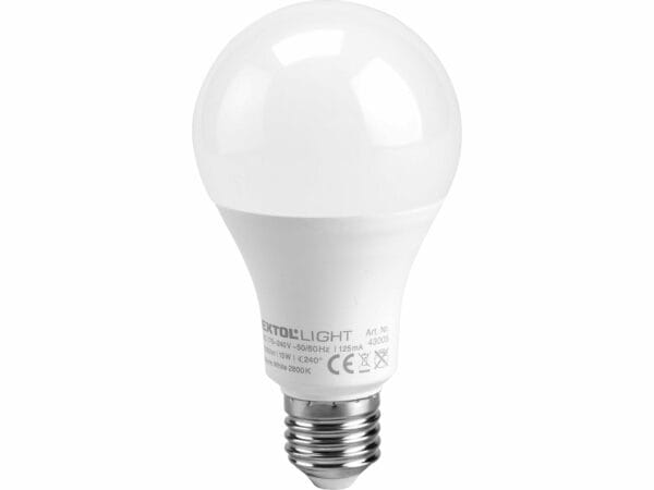 Durable and energy-efficient 15w LED light bulb with 30,000-hour service life and 1,350 lumens brightness. Warm white light, E27 base, and wide beam angle of 240°.