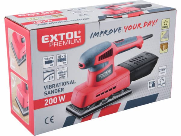 - The orbital sander, 200W, is a powerful tool that is perfect for all your sanding needs. With a voltage of 230V and frequency of 50Hz, it has a power consumption of 200W.